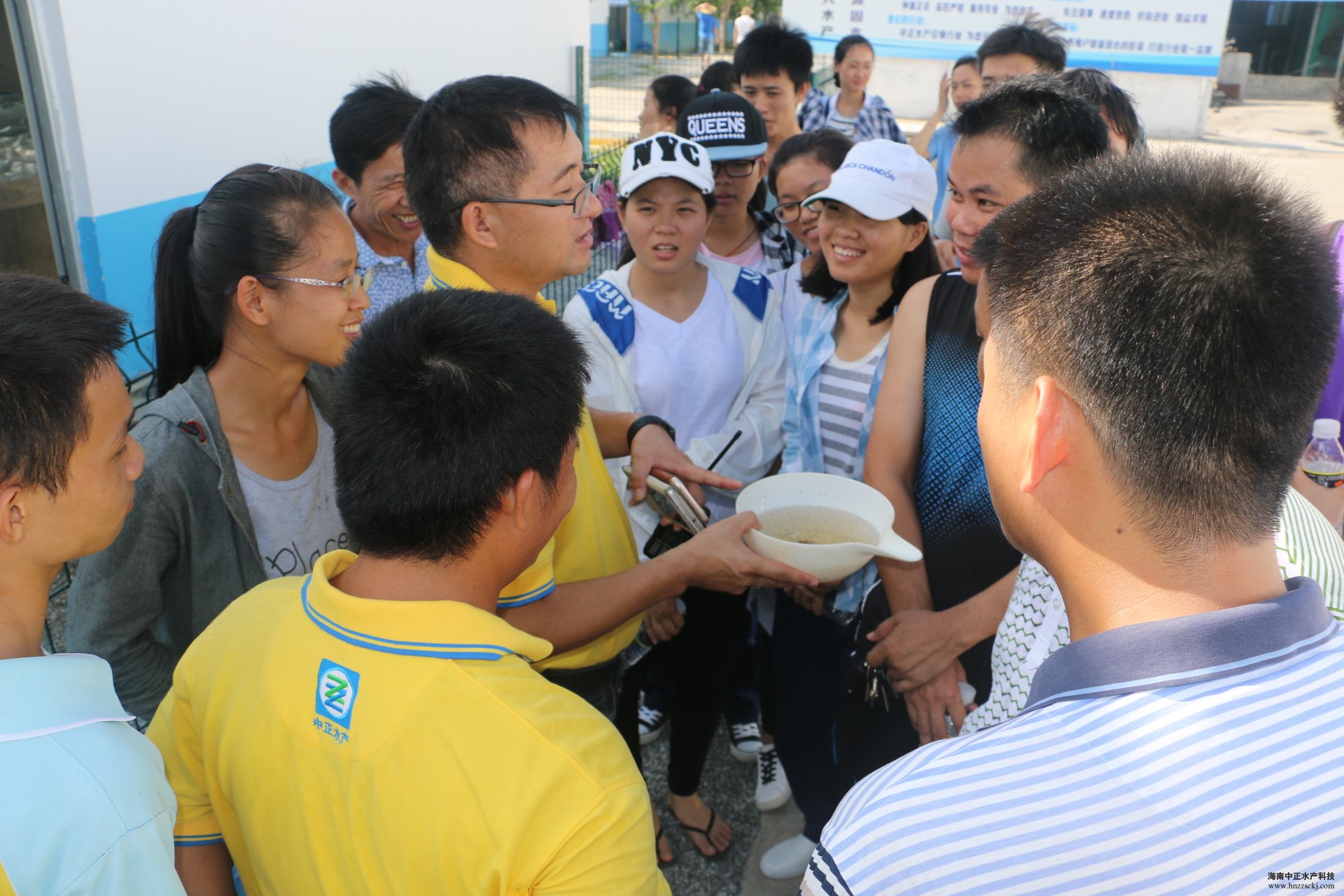 感恩社会、回馈社会是我国中华民族的传统美德。中正水产虽仅仅刚成立两周年,时间虽短,但我们并没有忘记感恩社会、回馈社会。7月20日下午,由东方市新龙镇党委书记邢福磊、新龙镇党委副书记镇长朱建玲组织了镇政府相关部门负责人、新龙镇各村委书记以及20位新龙镇2016年高考优秀学子和贫困生一起前往华体会·官方版网站登录入口,参与由海南中正水产和新龙镇政府联合主办的爱心助学活动,力助新龙镇2016年高考优秀学生圆梦大学。活动开始前,中正水产总经理王平带领了他们一起走进了藻类生产车间、水处理系统车间、丰年虫生产车间、育苗生产车间,并给他们详细地讲解了南美白对虾育苗的操作规范流程,现场气氛热烈,洋溢着浓浓的暖意,不断传来热烈的掌声。
