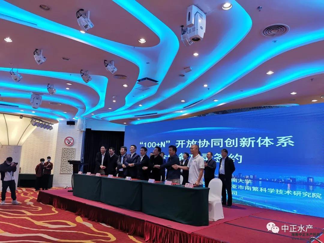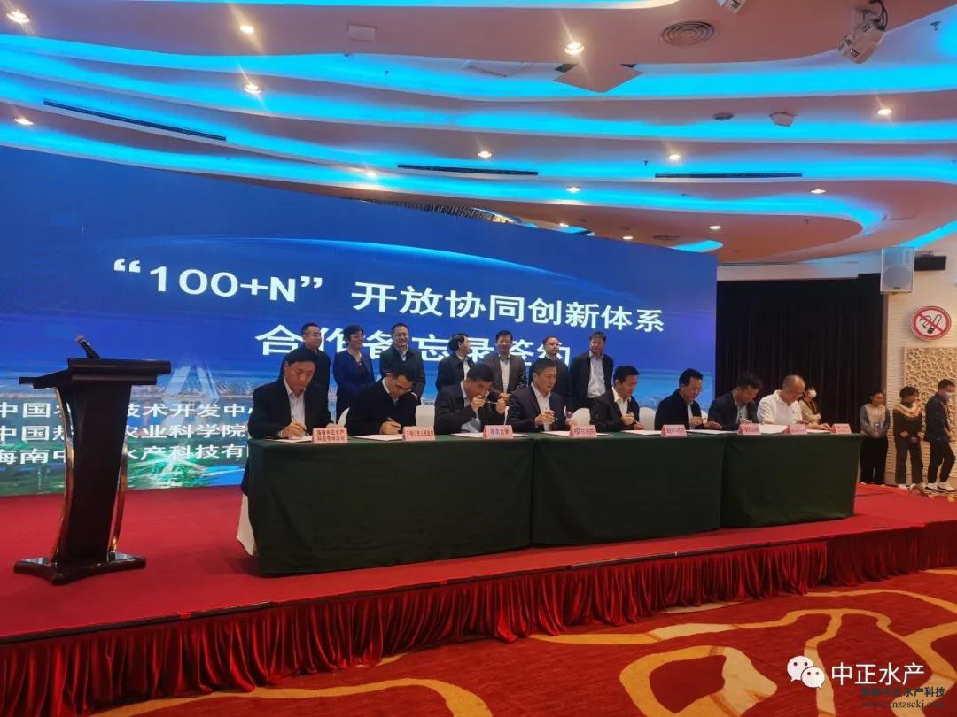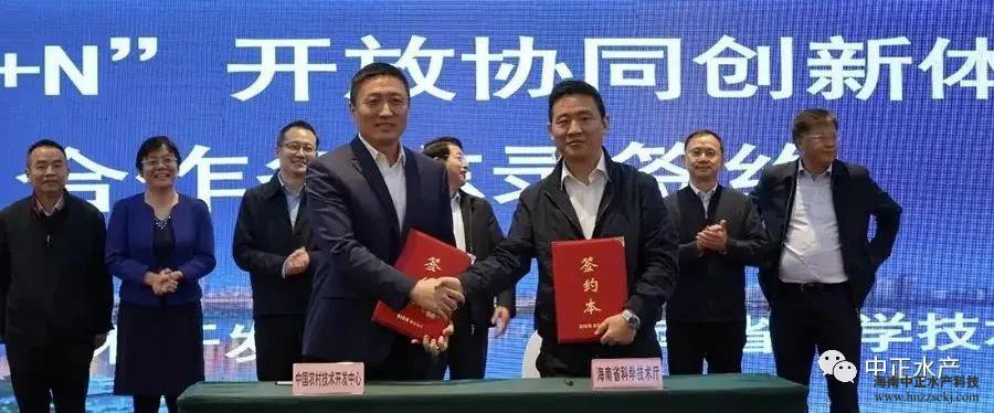 会上,农村中心和海南省科技厅与海南大学、中国热带农业科学研究院、三亚市南繁科学技术研究院、五指山市人民政府、海南广陵高科实业有限公司、华体会·官方版网站登录入口等6家单位签订了《“100+N”开放协同创新体系建设合作备忘录》。华体会·官方版网站登录入口作为中正水产星创天地的运营单位,也正式成为海南省“100+N”体系的签约单位。中正水产董事长雷夏雨到场签约,副总裁王平作为企业代表发言。