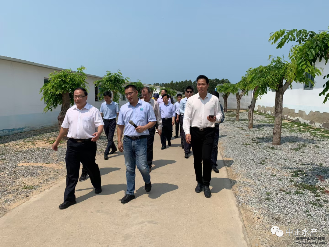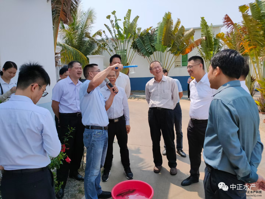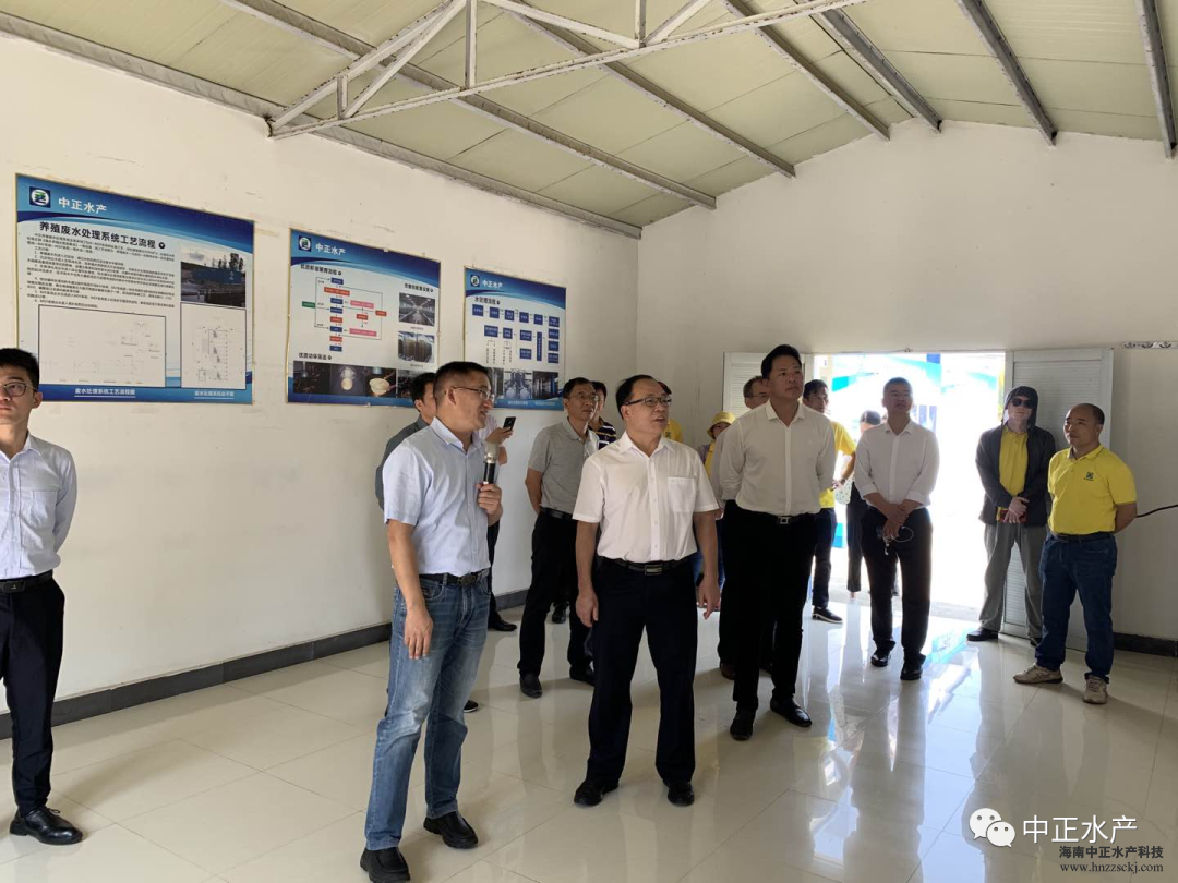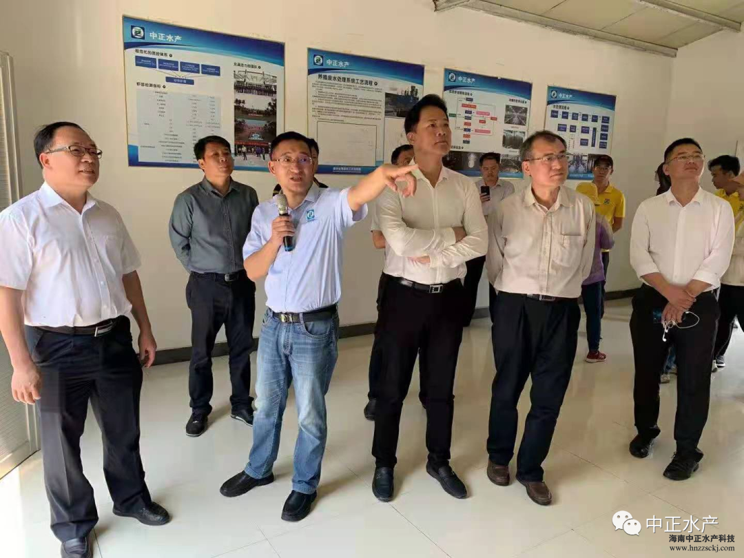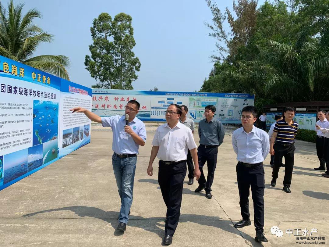在副总裁王平等公司领导的介绍引领下,调研组一行对公司新龙基地整体生产情况进行了实地考察,尤其关注虾苗生产、种虾培育等关键环节,并认真听取了企业关于对虾南繁育种及国家级海洋牧场示范区规划、水产南繁科技园区的发展规划。