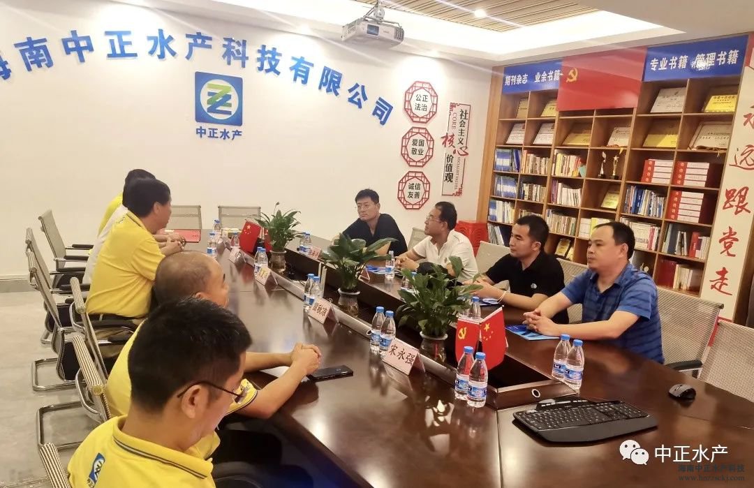 10月21日下午,山东省博兴县渔业服务中心党组书记,县委海洋办主任孙长江、党组成员,副主任张海洋,生产与科技服务站长张振利,办公室副主任王洪雨一行莅临公司考察指导,东方市农业农村局陈超副局长、中正水产雷夏雨董事长、王平副总裁等陪同考察。