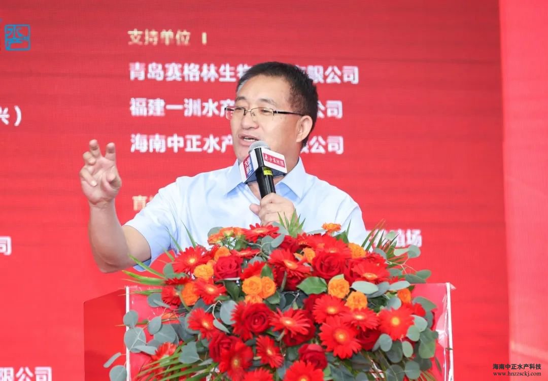 中正水产总经理、海南省对虾养殖协会会长王平主持“总裁沙龙论坛”环节。