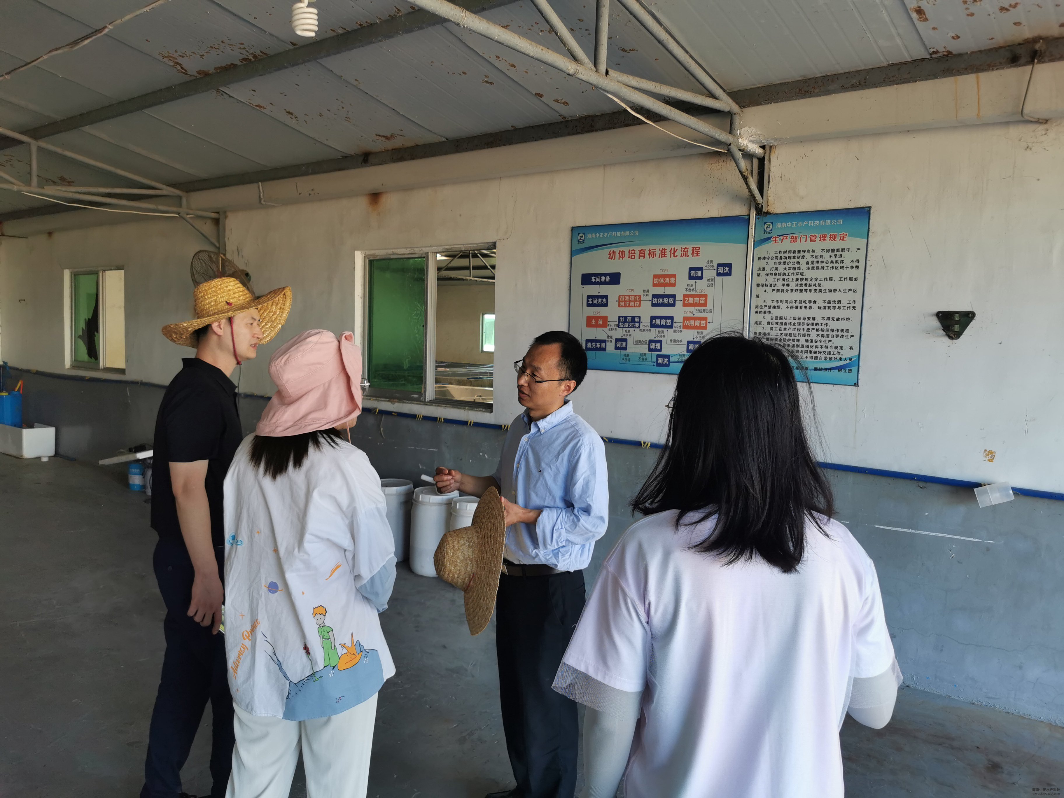 黄海所团队先后到育种中心、亲虾部、育苗部、生物饵料部进行了实地考察,对目前生产中存在的问题、生物安保体系运行情况、病原检测情况等进行了详细的询问,并给出相应的建议。