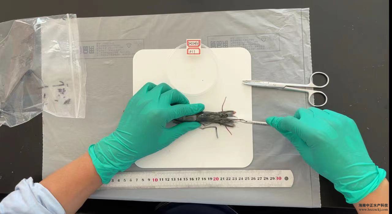 黄海所团队抽取了各批次的亲虾、虾苗、幼体、生物饵料等样本,及时进行组织取样,试剂保存,后期回所进行病理、生理生化分析。