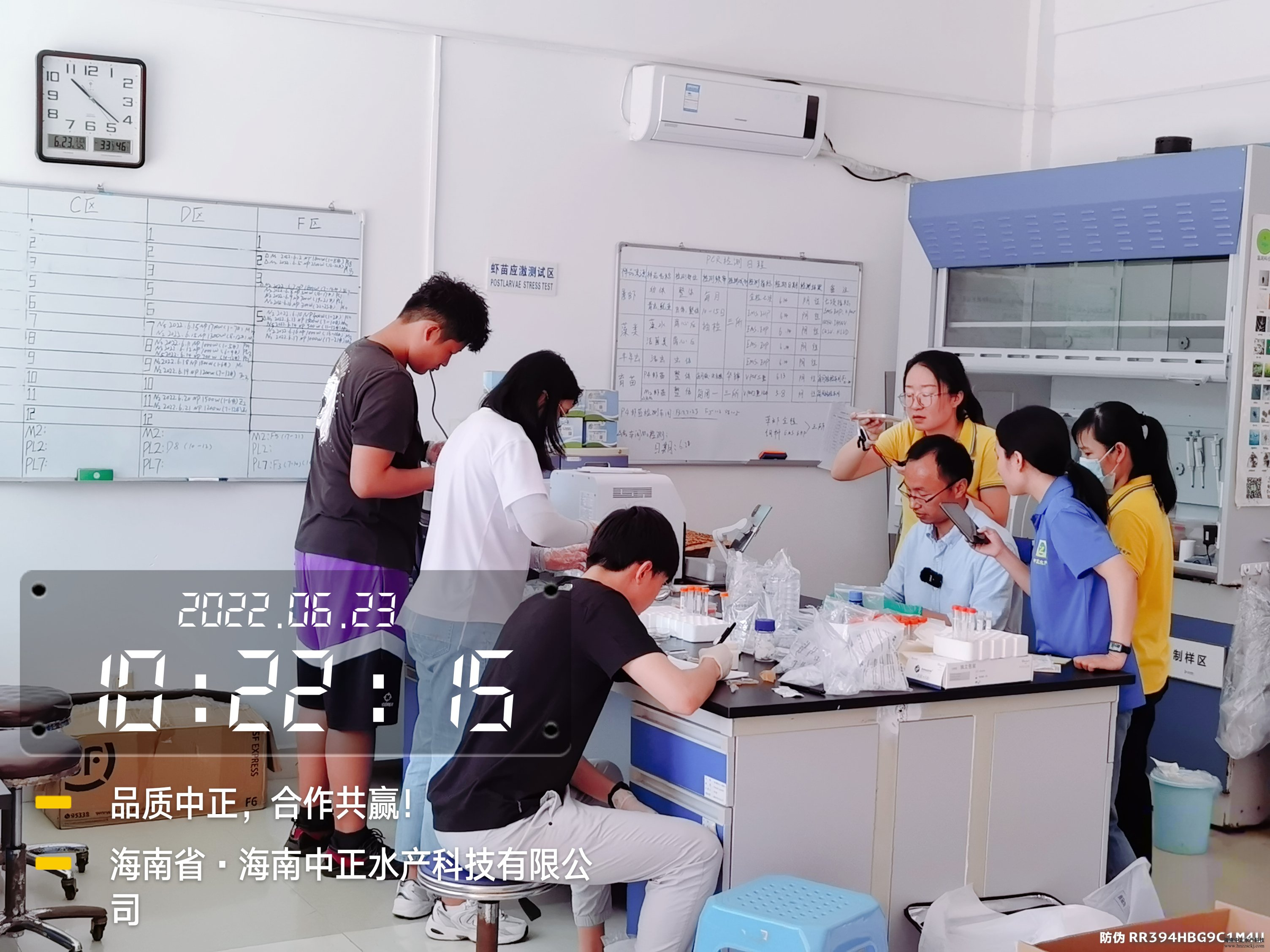 2022年6月23日,中国水产科学研究院黄海水产研究所养殖生物疾病控制与分子病理学研究室张庆利主任、董宣副研究员带领团队莅临中正水产指导生物安保体系运行工作。