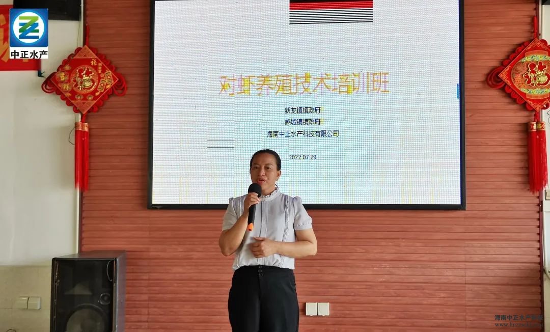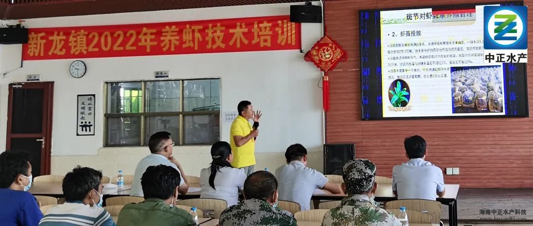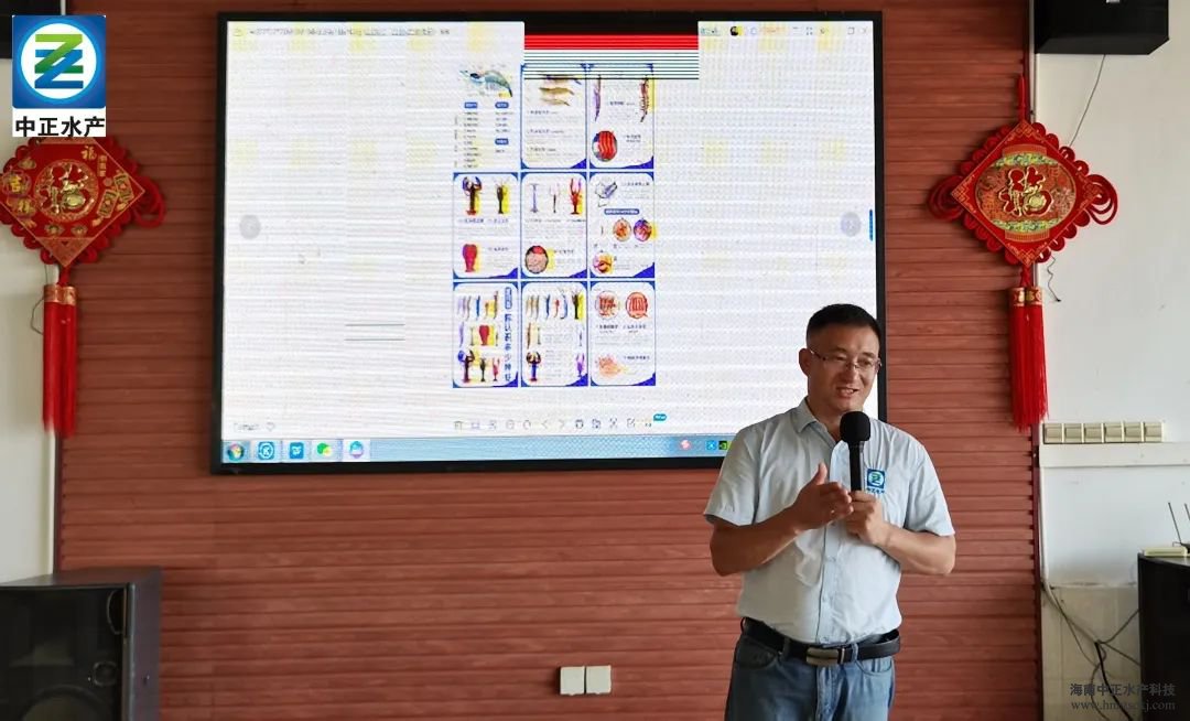 中正水产总经理助理王松辉从全球对虾养殖现状出发,剖析了虾产量及未来发展趋势,并向大家讲解中正水产从放苗前准备到病害防治的全过程斑节对虾健康养殖管理体系。进一步提高了脱贫户与监测对象的对虾养殖水平,从而更好地帮助其实现增收,助推乡村振兴。