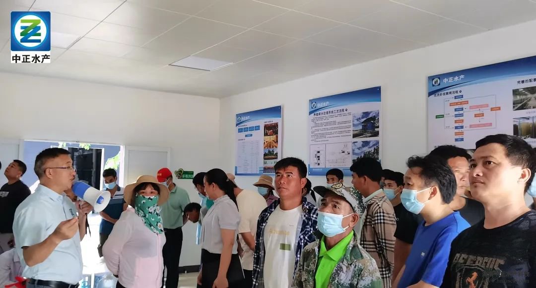 培训会后,参观团对中正水产公司进行了参观学习。中正水产副总裁王平针对大家关心的问题,从公司的生产运营、核心技术、经济效益等几方面为大家进行了细致的讲解。