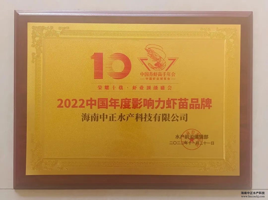 【华体会(中国)】热烈恭贺中正水产荣获“2022中国年度影响力品牌虾苗