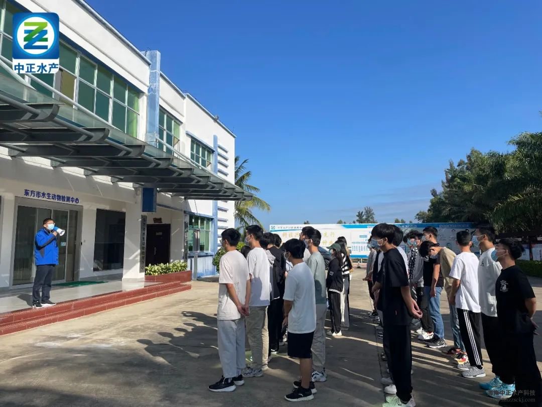 中正水产总经理助理苏连茂代表中正欢迎三亚热带海洋学院师生们的到来。中正设立了校企合作实习基地,旨在积极推动产学研合作与交流,联合培养创新型人才。