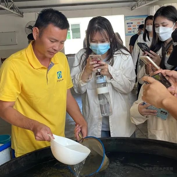 近日,三亚热带海洋学院水产养殖专业和海洋渔业科学与技术专业的师生们走进中正,深入学习对虾繁育流程,将理论与实践进行系统结合。