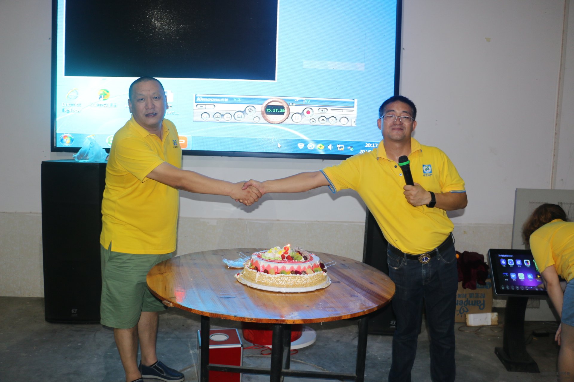 游园活动结束后,公司全体员工共进晚餐。为了感谢一直为公司兢兢业业、辛勤创业的两年老员工,公司给这批老员工奖励了大红包,激励着全体员工向老员工学习,学习老员工辛勤劳动、兢兢业业、拼搏奉献的精神。随后,公司副董事长雷秋凉和总经理王平共切蛋糕,公司全体员工唱生日歌,庆祝中正水产成立两周年。