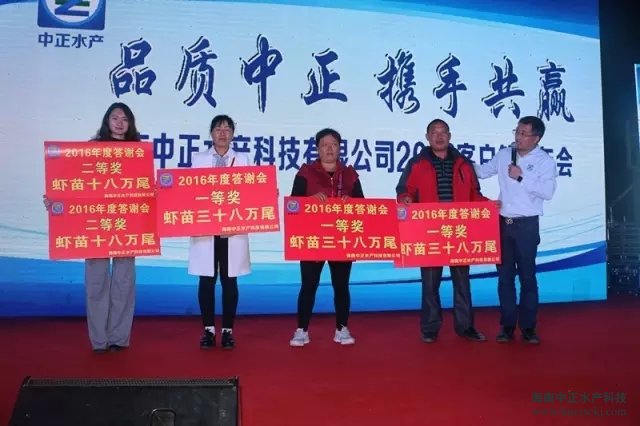 年会上,中正董事长雷夏雨在致辞中说到中正自成立之日起就一路奉行品质中正,携手共赢的经营理念。2017年,中正将继续严抓品质,继续为养殖户提供最放心的虾苗。