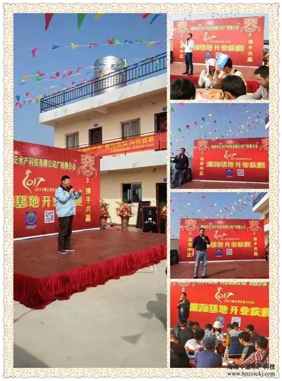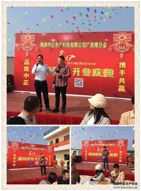2017年2月6日正月初十阳光明媚,海南中正水产北海基地张灯结彩,正式揭牌开业! 庆典迎来了两广的养殖户与嘉宾,大家欢聚一堂,共同见证这历史性的时刻。