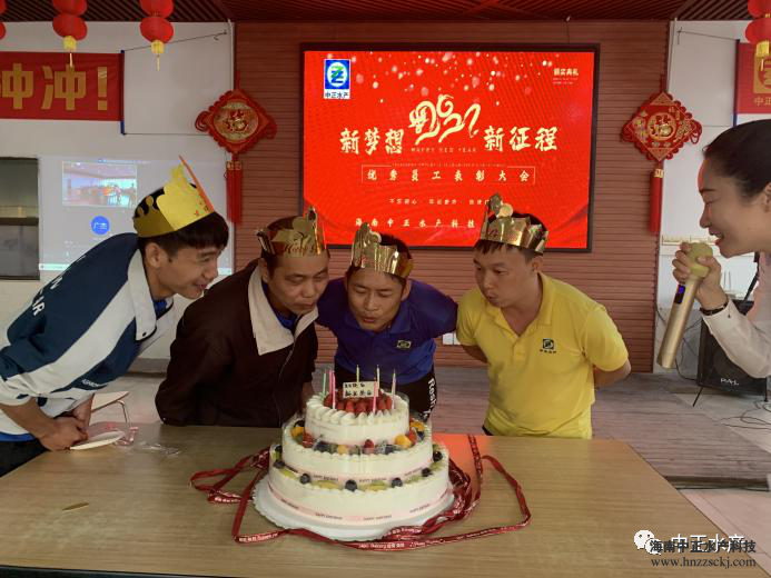 在这欢聚一堂的幸福时刻,公司还抽取了8位幸运员工送出华为手机作为新春礼品,将年会推向高潮。同时,借着年会的时机,王总代表公司为2月份生日的员工们送上生日祝福,大家插上蜡烛,全体员工唱响生日祝福歌,祝寿星们在生活里岁岁年年祥和平安,在工作中顺顺利利蒸蒸日上,愿全体中正人在中正这个大家庭里积极上进、生活安康,拥有满满的幸福感!